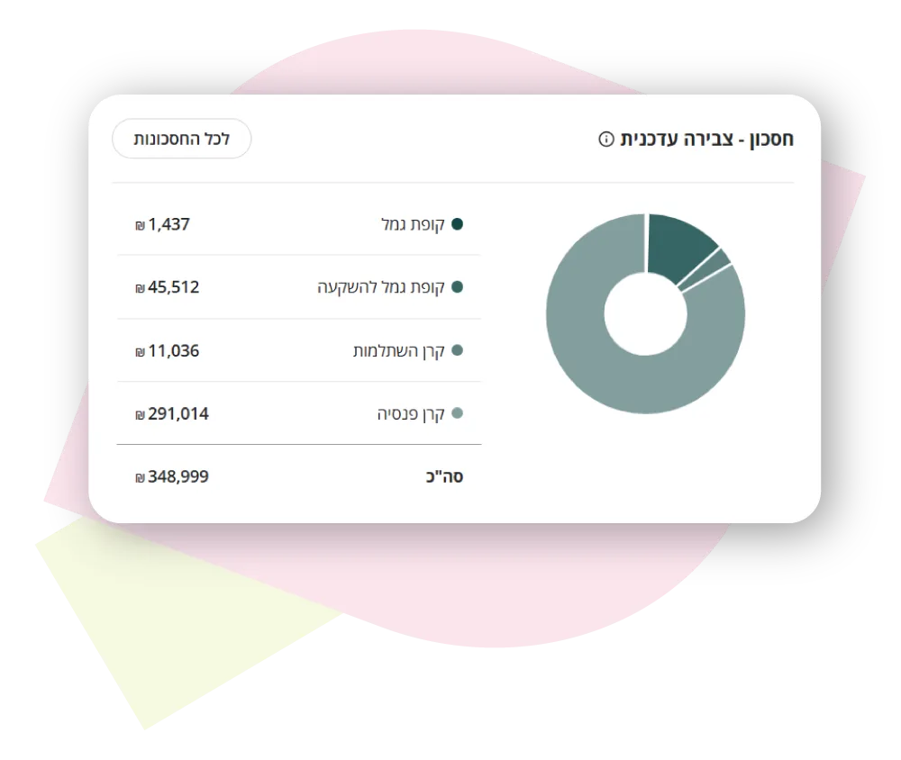 היא מרכזת את כל החסכונות והביטוחים שלכם במקום אחד בעזרת מערכת דיגיטלית חכמה ועוזרת לכם לעשות סדר בבלגן. בחינם.
